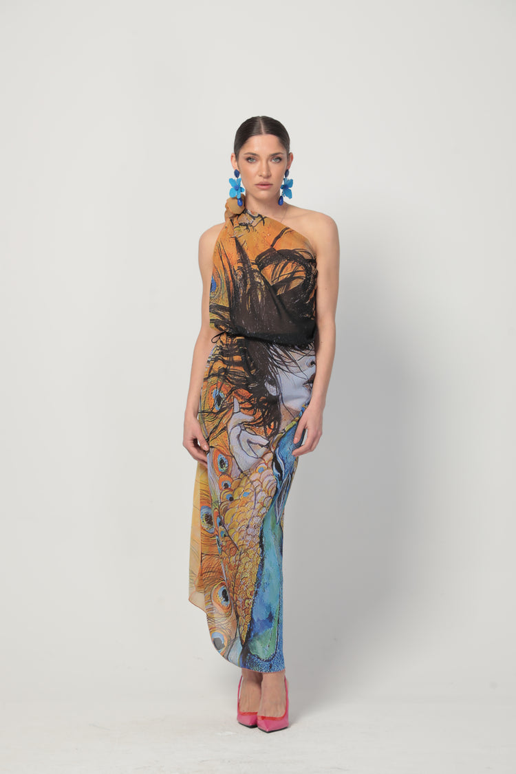 Inspired by Lulu’s evocative painting “Two in One,” this scarf channels a serene and introspective mood through soft, calming hues and a delicate interplay of abstract and natural motifs. The design captures the balance of dualities—light and shadow, strength and softness, movement and stillness.